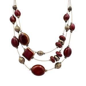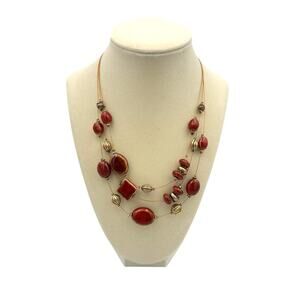 Chico’s Red Stone Gold Tone Beaded Illusion Wire Multi Strand Short Necklace