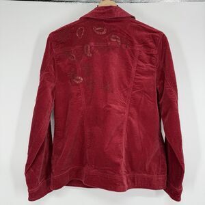Chicos Red Velvet Jean Jacket Womens Size 1 (8/10) Embroidered Holiday Boho