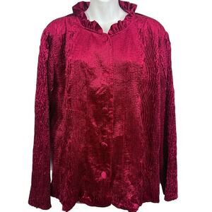 Chicos Red Velvet Long Sleeve Crushed Textured Jacket Special Occasion sz XL 3
