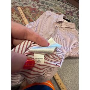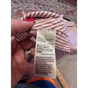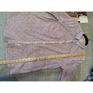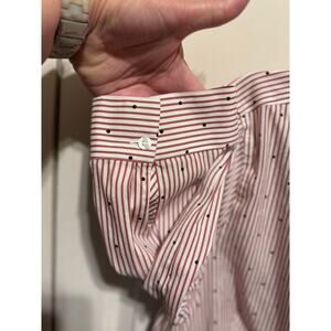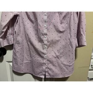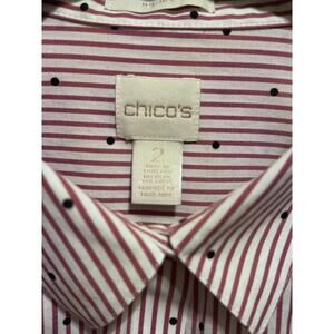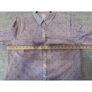 Chico's Red White Blue Polka Dots No Iron Button Up Collar Tunic Shirt Sz 2 (l)
