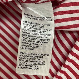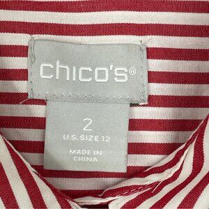 Chicos Red & White Striped Button-Up Shirt W/ Floral Lace Sleeves Size 12