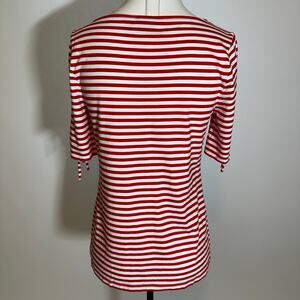 Chicos Red White Striped Leaf Print Cotton Tie Sleeve Blouse Womens Size Small S
