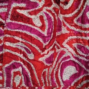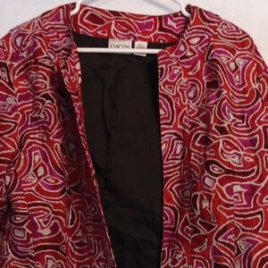 Elevate your style with this vibrant red and pink patterned jacket from Chico's. Perfect for adding a pop of color to any outfit.