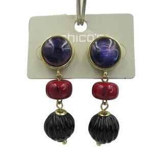 Chico's Red and Purple Linear Textured Drop Earrings NWT