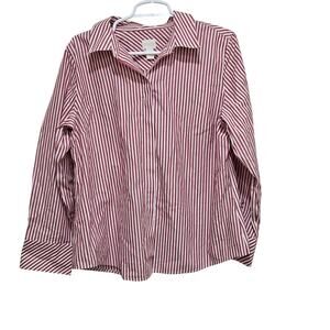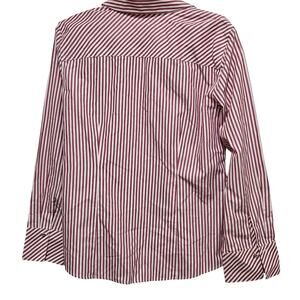 Stylish button down shirt with red and white stripes. Classic collar and long sleeves. Perfect for casual or formal wear.