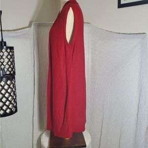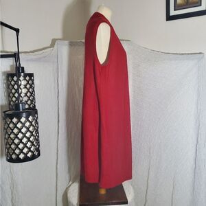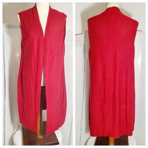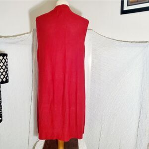 Holiday Red, extra long, sleeveless, knit open cardigan. Pre-owned in good condition Size 3 which according to Chico's convertion size chart it's a size XL. Please refer to pictures for best description and condition verification.