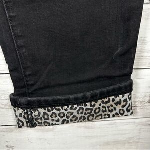 Chico’s Relaxed Straight Animal Print Leopard Cuff Ankle Black Jean 3 16/XL