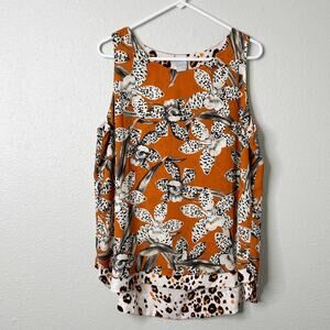 Chicos Reversible Floral Animal Print Tank Top Size 2 US Large 12/14 Orange