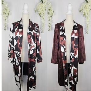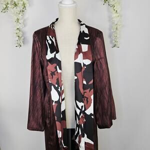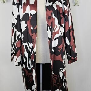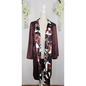 Chico’s Reversible Open Front Cardigan Duster Jacket Size 2 Large Abstract Satin