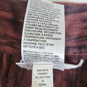 Add bold elegance to your wardrobe with this stunning reversible Chico’s kimono jacket. Featuring an eye-catching abstract print on one side and a textured woodgrain brown pattern on the reverse, this open-front layering piece delivers two looks in one. Perfect for pairing with jeans, trousers, or a dress for effortless sophistication and comfort.