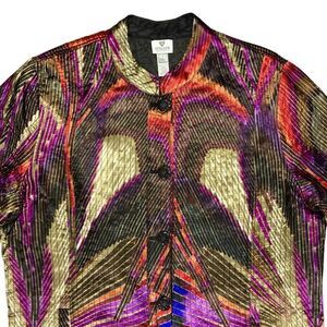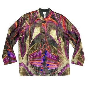 - Description: Chico's Reversible Quilted Jacket Womens XL Colorful Geometric Pattern Button Up