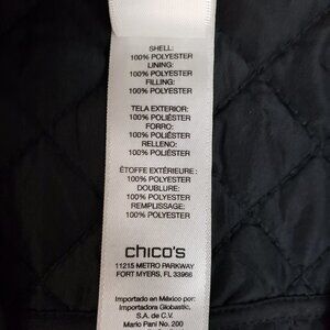 Open front lightweight quilted vest. Leopard print with black collar and trim reverses to solid black (once you remove the tags). Longer length. Chico’s size 1 corresponding to a Medium or 8.