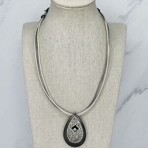 Chico's Rhinestone Teardrop Pendant with Metallic Silver Cord Necklace ✨