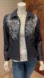 Beautiful black denim with a silver metallic shine. Large sparkly rhinestone and sequin embellishments. Collared. Hidden hook & eye front closure. Perfectly placed front darts provide a flattering fit. Fully lined.