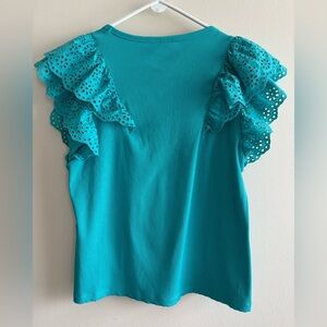 Chico’s Ribbed Eyelet Flutter Sleeve Tee Turquoise size M-L
