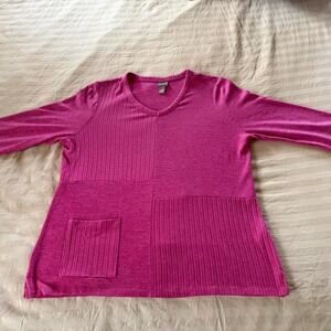 Chico's | Ribbed Patchwork Tunic | Magenta 3/4 Sleeve Top