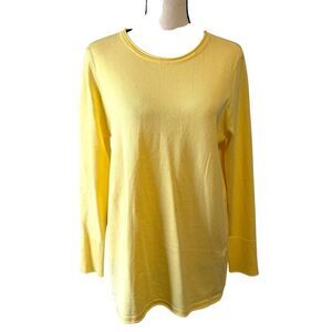 Chico's Ribbed Roll Crew Neck Pullover Sweater Yellow Medium