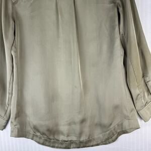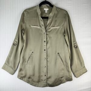 Chico’s Roll Tab Long Sleeve Button Down Green Blouse Satin Finish Size 0 Small