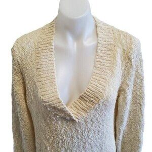 Chico's Romeo Cream Gold Sparkle Sweater V-Neck Super Soft And Cozy