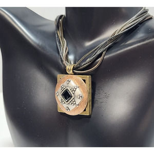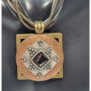 Chico’s Rope Necklace Silver Copper Gold With Stone Drop Pendant Gift for Her