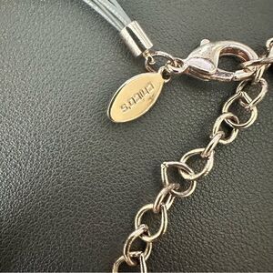 Like new Chico’s gray and rose gold tone necklace. Fits 18 to 21". Rose gold tone is very light, not overly pink. 4 gray strands appear to be faux leather.