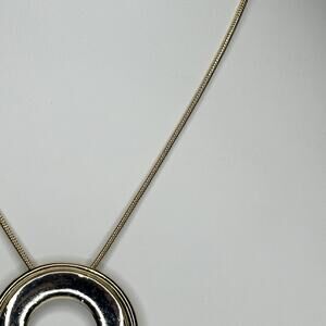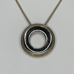 Gorgeous mixed metal necklace from Chico's! This stunning piece features a unique round pendant with layered gold and silver tone circles creating beautiful dimensional texture. The adjustable chain makes it so versatile - perfect for both casual and dressy looks.