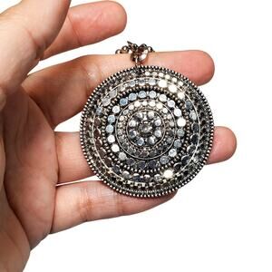 Chico’s Roxi Double Chain Silver Tone Medallion Pendant 24"