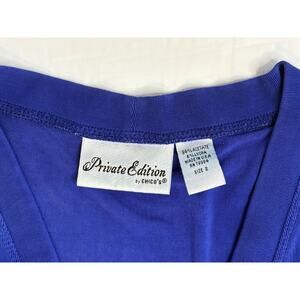 Chico's Private Edition Royal Blue Mother of Pearl Button Up Long Cardigan sz 2 Large (12-14). This is a classic beauty! An older Chico's item. Acetate and Lycra blend. Machine washable. In excellent gently used condition. No known rips, tears, holes, stains or defects. Normcore, Casual, Classic, Modern, Corpcore.