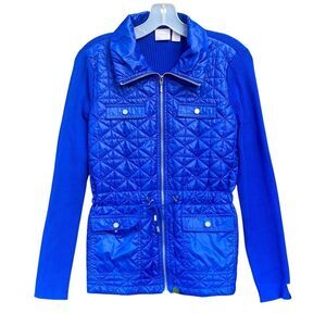 Chico's Royal Blue Quilted Puffer Full Zip Jacket/Sweater Small Lightweight