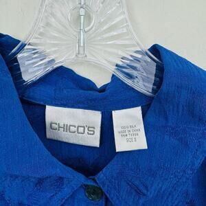 Chicos Royal Blue Silk Long Sleeve Button Up Women’s Size 2