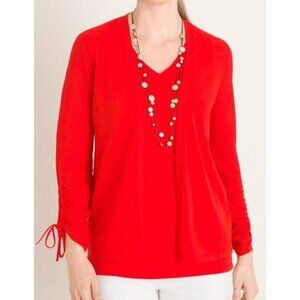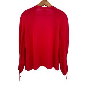 Chico's Ruched-Sleeve Cardigan Size 0 4 Vibrant Berry Red 3/4 Sleeve Open Front