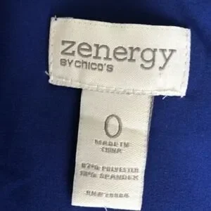 Stylish women's jacket with a ruffled front for feminine flair. Lightweight fabric. Zip-front closure and sleek side pockets. Worn one time, excellent condition. Size 0 in Chico's sizes, fits more like a medium.