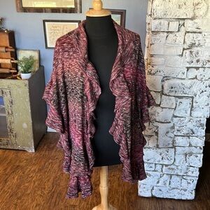 Chicos Ruffle Knit Ruana Cardigan Size Small/Medium