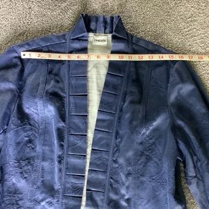 Chico’s Ruffled Jacket Blue Floral Pattern