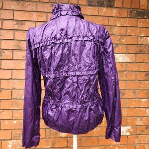 Style: Light weight crinkle jacket. Accent collar no pockets.