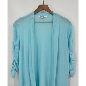 Chicos Rushed Sleeve Cardigan Women 0 Small Beach Aqua Sweater Sheer NWT
