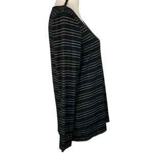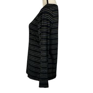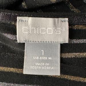 Chico’s SZ 1 (Medium) Top Striped Long Sleeves Stretch Scoop Neck Metallic Black