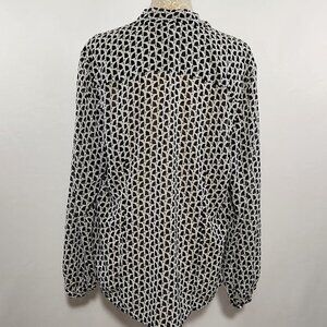 Chico's SZ 1/8-10 Black White Sheer Geo Long Sleeve Tie Collar Button Up Top
