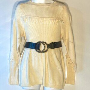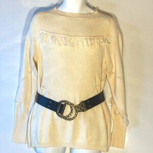 Chico's SZ M/L Adjustable Brown leather statement belt silver metal hardware