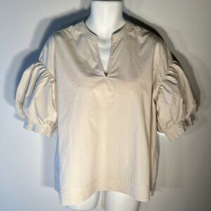 Chico's SZ18 Cream smock style cotton top Capsule Wardrobe Old Money Minimalist