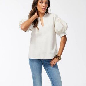 Smock style top with drop puffed sleeves