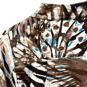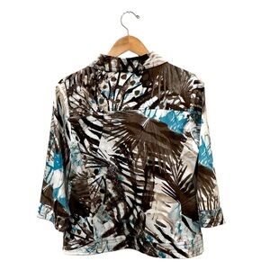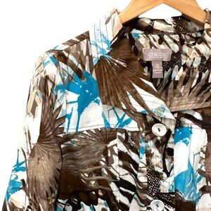 Chicos Safari Leopard Palm Print Button Front Blazer Jacket Size Small