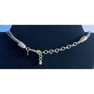 Chico's Sage Multi Strand Silk Cord Silver Tone Hoop Pendant Necklace 23"