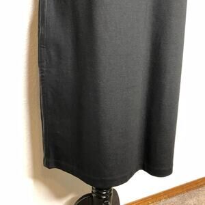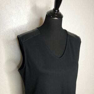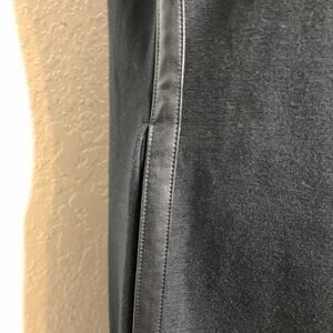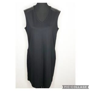 Chicos Sasha black faux leather trim sleeveless sheath dress.