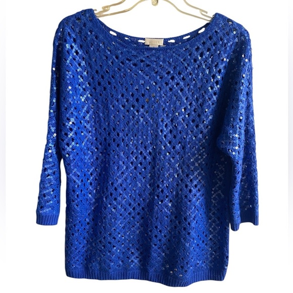 Chico’s Sasha sequin pullover crewneck sweater kinetic blue Large NWT