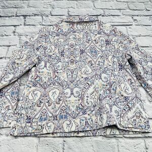 Chico's Sateen Button Down Shirt Jacket 2/12 Petite White Blue Paisley Print