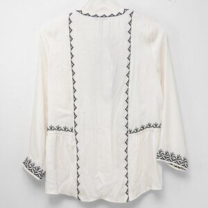 Chico's Satin Embroidered Blouse Bohemian Long Sleeve Off White Black Size 0 / 4
