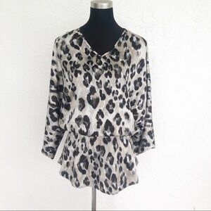 Chicos Leopard Print Tunic Top. Wide sleeves and elastic waist.