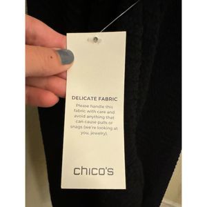Great stretch. New with tags. Super cute sleeves, shoulder seam detail. See pics for measurements. Size Chico's 3 which is an XL/16
