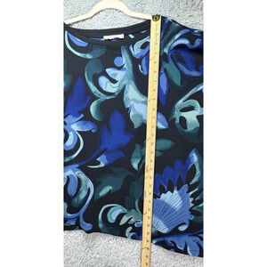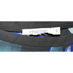 Chicos Scroll Print Woven Poncho Top S/M Blue Green Black Lightweight